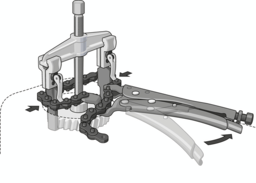 "longDescription": "Particolarmente adatto per il bloccaggio di sezioni geometriche difficili, con il n. 136 K-105, i ganci di vari estrattori possono essere bloccati e serrati con la catena dopo aver bloccato il componente da estrarre. In questo modo si evita che i ganci si pieghino verso l'esterno e scivolino. L'estrazione è possibile anche con una superficie di contatto dei ganci molto ridotta.<br>",