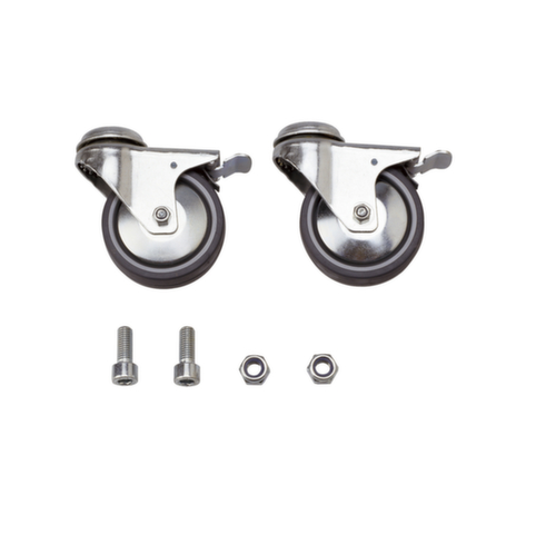 "metaDescription": "2 ruote piroettanti/2 ruote con bloccaggio per Supporti per sacchi rifiuti molto grandi - 2ruote orient./2fisse, per Supporti per sacchi rifiuti molto grandi, gomma, sovrapprezzo",
