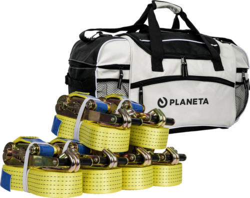 "longDescription": "<h2>Pacchetto cinghia di fissaggio</h2><strong>incl. borsa sportiva</strong><br><ul><li>in poliestere impermeabilizzato con poliuretano</li><li>con gancio profilato e cricchetto</li><li>con righe delle tonnellate intessute</li><li>con etichetta di capacità di carico</li></ul><br><h3>il set è composto da:</h3><ul><li>6x 8 m, larghezza nastro 50 mm, forza di trazione 5000 daN, in 2 parti</li></ul><br><h3>Norma/direttiva/regolamento:</h3><ul><li>Conforme a EN 12 195-2</li></ul>",
