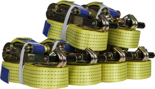 "metaDescription": "6 cinghie di fissaggio con ganci di profilo - 2pezzi con gancio profilato, 6cinghie di ancoraggio da 8m, forza di trazione 5000daN, l nastro 50mm, poliestere",