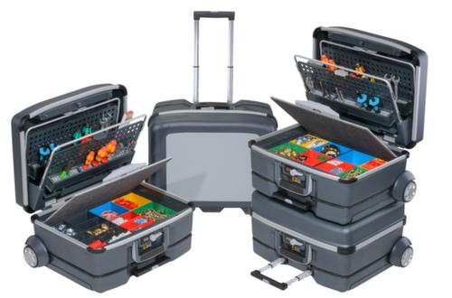 "longDescription": "<h2>Carrello di servizio/carrello di montaggio</h2><ul><li>In policarbonato, telaio in alluminio</li><li>Può essere aperto e chiuso con una sola mano</li><li>Il coperchio si blocca all'apertura e frena alla chiusura</li><li>Chiusura con lucchetto a combinazione</li><li>Estrazione telescopica a 4 pieghe in alluminio</li><li>Ruote scorrevoli e resistenti all'usura, cuscinetti a sfere</li></ul><br>Il caso<br>Questo carrello di servizio della serie ProServe di Allit è realizzato in policarbonato ed è quindi estremamente robusto e resistente agli urti. Il telaio del profilo è in alluminio e si chiude ermeticamente. La custodia è facile da aprire e chiudere con una sola mano: È sufficiente premere la custodia per chiuderla e azionare la leva con una sola mano per aprirla. Il coperchio si blocca all'apertura e rimane in posizione. Inoltre, è dotato di un freno integrato per il coperchio che offre resistenza e controlla il peso del coperchio durante la chiusura. La custodia può essere chiusa con un lucchetto a combinazione e protegge gli utensili da accessi non autorizzati.<br><br>Il telaio<br>Il carrello è dotato di un'estensione telescopica a 4 pieghe in alluminio. L'azionamento avviene tramite un pulsante. Le ruote con cuscinetti a sfera sono particolarmente scorrevoli ed estremamente resistenti all'usura. <br><br>L'equipaggiamento interno<br>Il carrello di montaggio è disponibile come modello base o con diversi allestimenti interni. Il modello base può essere dotato di numerosi scomparti per soddisfare le esigenze individuali. Tra le altre cose, è possibile scegliere tra portautensili, scatole per piccoli pezzi o inserti in schiuma.<br><br>Il materiale<br>Il policarbonato ha un'elevata resistenza, rigidità e durezza e possiede buone proprietà di isolamento dall'elettricità. Inoltre, il materiale ha un'ampia gamma di temperature ed è resistente all'acqua, a molti oli e grassi, a molti acidi minerali e a soluzioni acquose di sali neutri e agenti ossidanti. Il policarbonato ha quindi un'elevata resistenza all'invecchiamento e fa di questo carrello di montaggio il vostro compagno per molti anni.<br><br><strong>Nota bene!</strong><br><br>Dovete viaggiare in aereo con il vostro carrello di servizio? Ordinate quindi contemporaneamente la cinghia per bagagli con lucchetto a combinazione e lucchetto TSA.<br>",