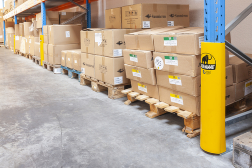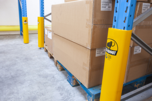 "metaDescription": "a.m.p.e.r.e. Protezione per reggipiani Rack Mammut® - per uso interno ed esterno, H 600 mm, per reggipiani B 70-130 mm, forza d'urto 2,4 t, PP-C, giallo",