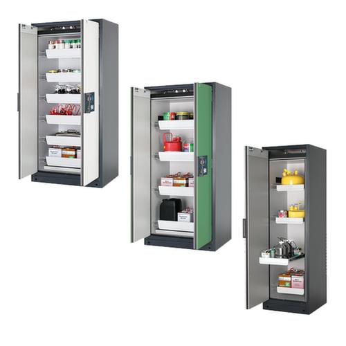 "description": "p. sostanze infiammabili/tossiche, tipo 90, AxlxP 1953x1193x615mm, porta a doppio battente, 6xripiano a vasca/vasca di raccolta, corpo RAL7016, parte ant. RAL9010",