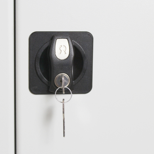 le misure più importanti di dell' armadio per settore chimico in breve:struttura in acciaio. resistente contro veleni, sostanze pericolose, spray, prodotti chimici e pesticidi. L’accesso al contenuto dell’armadio è particolarmente comodo grazie alla porta a doppia anta. chiudibile in modo sicuro con serratura a cilindro, ante chiudibili insieme.