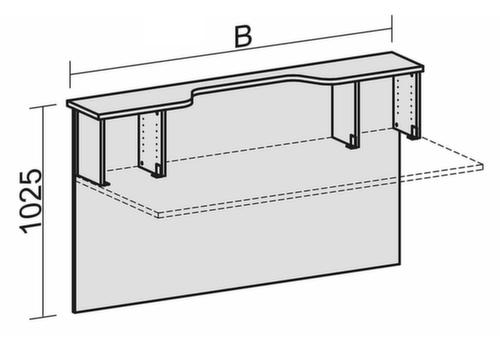 "metaDescription": "Banco frontale con fianchi a mensola + foro per monitor - HxL 1025x1800 mm, in vari colori",