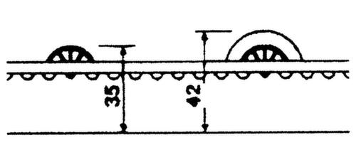 "description": "rullo con bordo in plastica, car. max./ruota 65kg, L 3,6m, distanza ruote 72mm",