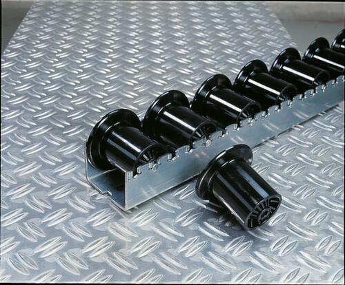 "description": "fino a 130 kg di carico per rullo, con rulli cilindrici o flangiati, in plastica o acciaio, in varie lunghezze.",