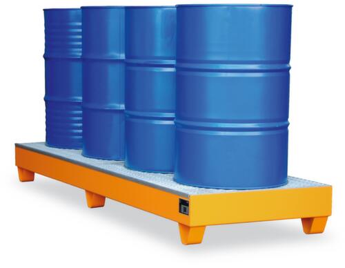 "description": "p. 4x fusto 200l, capacità raccolta 222l, AxlxP 250x2400x800mm, c. griglia, acciaio, RAL2000",