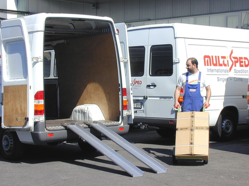"longDescription": "<h2>Binario di carico leggero</h2><strong>Utilizzare in coppia per interassi di ruote di diverse larghezze</strong><br><ul><li><strong>Carico e scarico sicuri</strong> grazie al bordo di protezione laterale</li><li><strong>Non scivola</strong> - angolo di arresto per il fissaggio</li><li><strong>Lavoro sicuro</strong> - con superficie di scorrimento antiscivolo</li><li><strong>Robusto e durevole</strong> - in alluminio</li></ul>",
