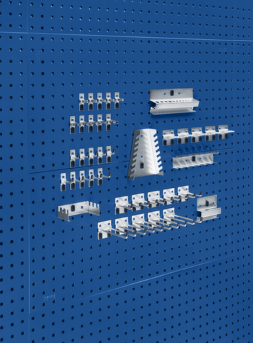 "title": "bott Piastra forata con assortimento di ganci da 42 pezzi, altezza x larghezza 991 x 914 mm, RAL7035 grigio luce",