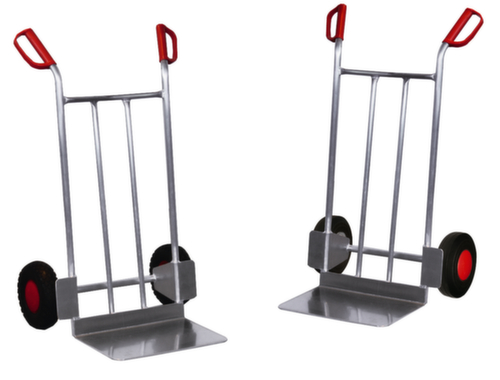 "title": "VARIOfit carrello per sacchi in alluminio con pala extra grande, carico massimo 200 kg, gommatura in gomma solida",