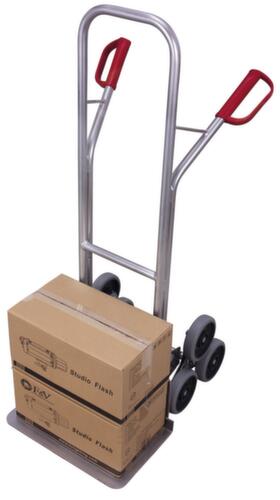 "title": "VARIOfit Autocarro con scala a 3 stelle in alluminio, carico massimo 200 kg, larghezza pala 480 mm, gommatura in gomma solida",