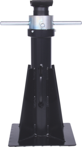 "longDescription": "costruzione solida, per veicoli di peso elevato, elevata stabilità grazie alla grande e robusta piastra di base, barra di trasporto in acciaio fuso, regolabile rapidamente, leva di sgancio rapido a 13 stadi, è particolarmente adatto in combinazione con martinetti per assicurare e sostenere un carico, consegna in pezzi, in acciaio massiccio, 160.0377 / 160.0378 con tornello<br>",