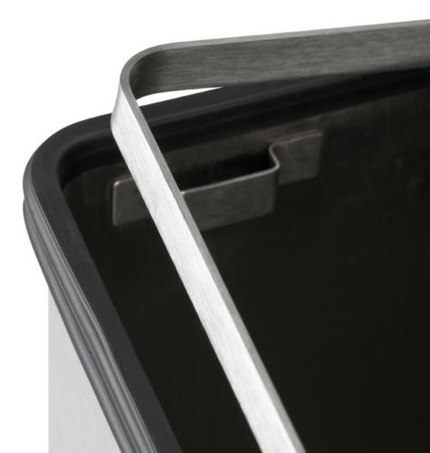 "description": "1x27l, AxlxP 445x370x370mm, dispositivo di fissaggio per sacco dei rifiuti, corpo acciaio inox, coperchio acciaio inox",