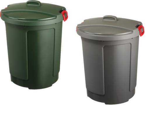 "metaDescription": "Cestino per rifiuti con chiusura a morsetto sul coperchio - HxD 640x490/390 mm, polipropilene, in vari colori",