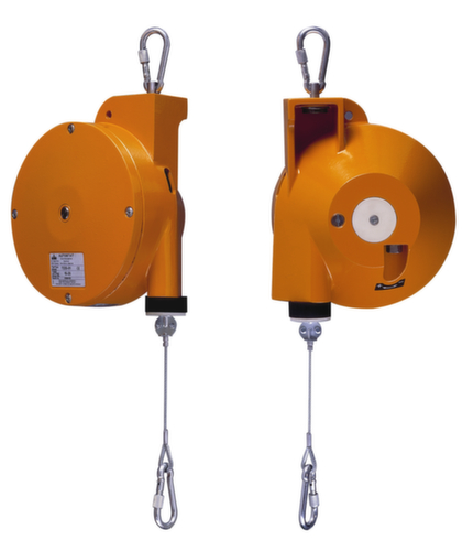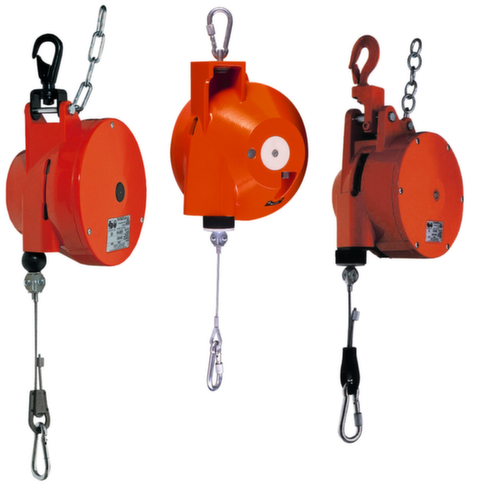 "longDescription": "<h2>Controbilanciatore</h2><strong>per una manipolazione degli utensili senza fatica</strong><br><ul><li><strong>Maggiore flessibilità</strong> - gancio di sicurezza liberamente ruotabile e orientabile</li><li><strong>Carichi facilmente agganciabili</strong> - con moschettoni a vite</li><li><strong>Protezione anticaduta standardizzata</strong> - catena di sicurezza secondo DIN 15112 </li><li><strong>Lavoro sicuro</strong> - dispositivo di blocco del tamburo della fune e dispositivo di sicurezza per la rottura della molla</li><li><strong>Regolazione continua del carico</strong> tramite vite di regolazione</li><li>Facile sostituzione della corda di sospensione</li></ul><br><strong>Capacità di carico fino a 21 kg:</strong><br><ul><li>Alloggiamento in plastica resistente alla forma e agli urti</li><li>Gancio di sicurezza come sospensione isolata</li><li>Cavo di supporto regolabile in continuo tramite blocco del cavo</li><li>Premere il morsetto per fissare l'estremità della corda</li></ul><br><strong>Capacità di carico fino a 55 kg:</strong><br><ul><li>Alloggiamento e tamburo in alluminio ad alta resistenza </li><li>Tamburo con cuscinetto a sfera singolo</li></ul><br>Capacità di carico<strong>fino a 100 kg</strong>: <br><ul><li>Alloggiamento e tamburo in alluminio ad alta resistenza </li><li>La sospensione del gancio di sicurezza può essere posizionata orizzontalmente</li><li>Catena ad espansione di sicurezza come protezione anticaduta </li><li>Protezione della molla di sospensione grazie alla ruota libera brevettata</li><li>Protezione da sovraccarico mediante limitazione dell'estensione della fune</li><li>Tamburo con doppi cuscinetti a sfera</li><li>Cavo di sospensione regolabile in continuo tramite blocco del cavo</li><li>Premere il morsetto per fissare l'estremità della corda</li></ul><br><strong>Importante!</strong><br><br>In conform. a BGR 500 è necessario sottoporre bilanciatori e dispositivi bilanciamento peso a verifica annuale. Controllo e manutenzione da parte di tecnici qualificati su richiesta.<br>",