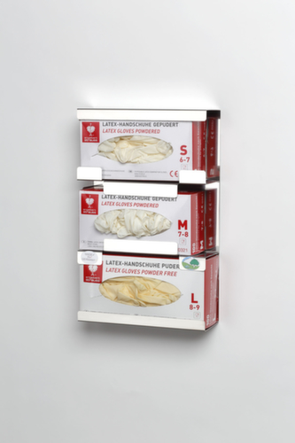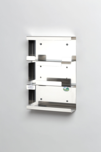 "metaDescription": "VAR Montaggio a parete per contenitori di raccolta per materiali riciclabili - 3unità, p. contenitore materiali riciclabili, LxP 971x363mm, giunto ancoraggio a muro, lamiera di acciaio, argento",