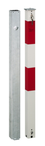 "metaDescription": "Dissuasori, altezza 900 mm, da incassare nel cemento - quadrato, AxlxP 900x70x70mm, alluminio, rosso/bianco, abbassabile, serr. cil., da incassare nel cemento",