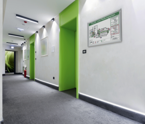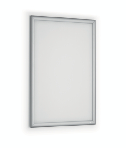 telaio in alluminio anodizzato in argento. angoli smussati. parte anteriore in pellicola protettiva contro raggi UV. parete posteriore in polistirolo resistente agli urti. retro con strisce autoadesive. fornitura: incluso materiale di montaggio.