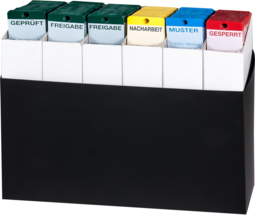 "longDescription": "<h2>Set di tag merci</h2><strong>per una rapida organizzazione del magazzino</strong><br><ul><li>Adatto a tutti quei posti nel magazzino dove non c'è abbastanza spazio per l'etichettatura</li></ul><br><h3>Set composto da:</h3><ul><li>600 rimorchi in totale:</li><li>100x \"Bloccato</li><li>100x \"campione</li><li>100x \"Riorganizzazione\"</li><li>100x \"Rilascio</li><li>100x \"Testato</li><li>100x neutro per l'etichettatura libera</li><li>1 scatola dispenser</li><li>In polipropilene</li><li>Stampa in linea per l'etichettatura su tutti i lati- Resistente alle intemperie e adatto all'uso all'aperto</li><li>Facile da marcare con una penna a sfera</li></ul>",