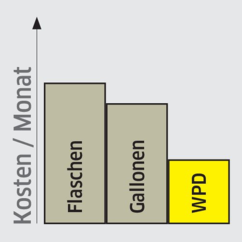 Il nuovo dispenser d'acqua WPD 50 Ws, di fascia media e poco ingombrante, è l'aggiunta ideale alla nostra gamma di prodotti. Per gustare acqua fresca refrigerata, con o senza anidride carbonica.