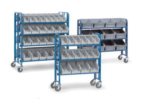 "title": "fetra Carrelli afetra ripiani con ripiani inclinabili e scatole, carico max. 250 kg, 3 piani",