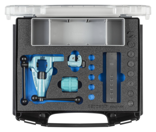 "longDescription": "Per la svasatura di precisione standardizzata secondo DIN 74234, Per tubi dei freni, tubi idraulici ecc. con uno spessore di parete da 0,7 a 1,0 mm, Corpo in ghisa malleabile GTW 40, Verniciato blu, Set completo per tubi metrici, metrici e imperiali, Con tagliatubi da 4-32 mm Ø e tagliatubi piccoli da 4-16 mm Ø, In GEDORE i-BOXX® 72 No. 1101 L, Dimensioni: L 367 x P 316 x H 72 mm<br>",
