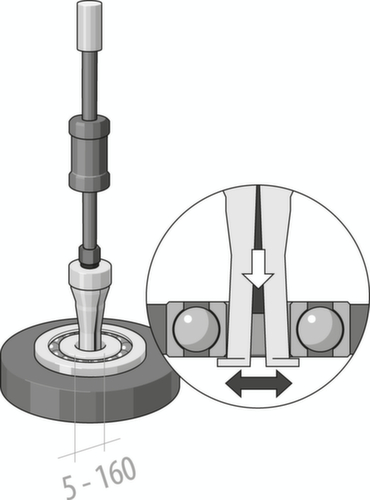 "longDescription": "Adatto per la rimozione di piccoli cuscinetti a sfera, in quanto spesso non c'è spazio sufficiente per i controsupporti, può essere utilizzato anche con gli adattatori per filettatura n. 1.81<br>",