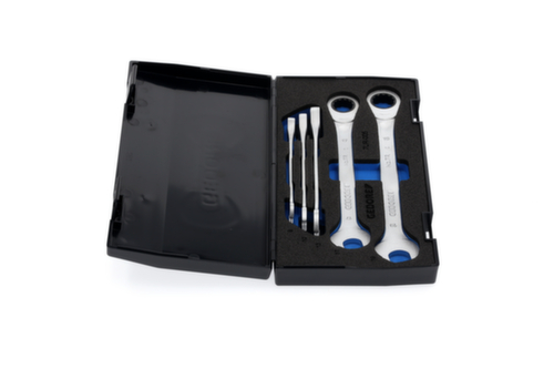 "title": "GEDORE 7 R-005 Set di chiavi aperte con cricchetto ad anello 5 pezzi 8-19 mm",