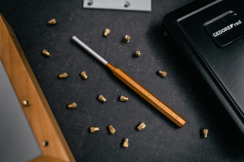 "longDescription": "Esecuzione secondo DIN 6450 , Estremità del martello ricotte, Albero in rame, Punta laccata in argento, In acciaio al cromo vanadio, In valigetta metallica pieghevole<br>",
