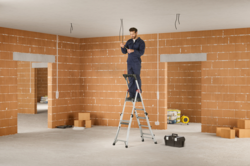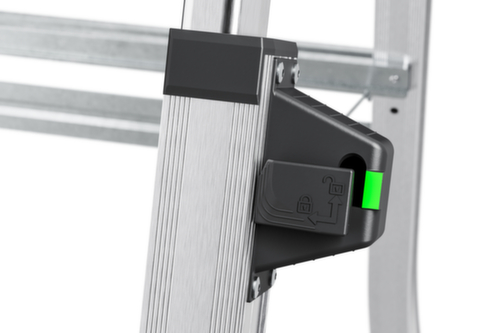 Le misure più importanti di Hailo scale TopLine TL100 in breve:Altezza x profondità da ripiegato 1430 x 140 mm. applicazione sicura mediante sistema di chiusura di sicurezza degli elementi telescopici con indicatore “Lock/Unlock” colorato. dotato di vaschetta portaoggetti con superfici di appoggio di diverse dimensioni per bombolette (di colore). vaschetta portaoggetti in plastica. piedi in plastica antiscivolo all’estremità del montante. In alluminio, montanti anodizzato. Si evita così di sporcarsi le mani. Al tempo stesso la superficie anodizzata permette una semplice pulizia. Carico massimo 150 kg. misure in posizione aperta: altezza x larghezza x profondità 1730 x 520 x 1010 mm. peso 8,8 kg.