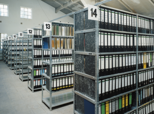 le misure più importanti dello hofe scaffale portadocumenti in breve:3 campi scaffale ciascuno con 6 piano(i) con ripiani in lamiera sottile di qualità, di cui 1 ripiano di copertura / 5 altezze raccoglitore. piani con bordo di arresto e bordatura laterale del ripiano superiore (senza puntoni aggiunti) contro la caduta dei raccoglitori e al tempo stesso per la massima stabilità in profondità e longitudinalmente, bordo di sicurezza per la protezione dalle lesioni. utilizzo su un lato - concepito per la collocazione sulla parete. struttura in acciaio, supporto con rivestimento in zinco anticorrosione, piani con rivestimento in zinco anticorrosione.