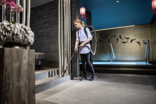 Il nostro aspirapolvere a zaino BVL 5/1 Bp, ultraleggero, potente e alimentato a batteria, è il primo aspirapolvere che pesa solo < 4,6 kg (peso dello zaino) grazie all'innovativo materiale EPP e le cui proprietà del materiale gli consentono contemporaneamente di essere particolarmente robusto e durevole. Con una potenza di 500 watt, una batteria di lunga durata e un contenitore di raccolta da 5 litri, l'aspirapolvere a zaino è la prima scelta ovunque gli spazi ristretti rendano difficile il lavoro di pulizia: al cinema, in aereo, in autobus, in treno, per la pulizia dell'ufficio o persino sulle scale. Il telaio di trasporto ergonomico e il funzionamento ben studiato, in cui tutte le funzioni operative e aggiuntive più importanti sono controllate da un pannello di controllo sulla cintura, nonché la semplicità di utilizzo progettata per destrimani e mancini, garantiscono un lavoro confortevole e senza fatica. Il motore EC senza spazzole è anche molto resistente all'usura. Sono inclusi diversi accessori e, come opzione, è disponibile anche un filtro HEPA 14. Al momento dell'ordine, si prega di notare che la potente batteria Kärcher Battery Power+ e il relativo caricabatterie devono essere ordinati separatamente per questa versione del dispositivo.