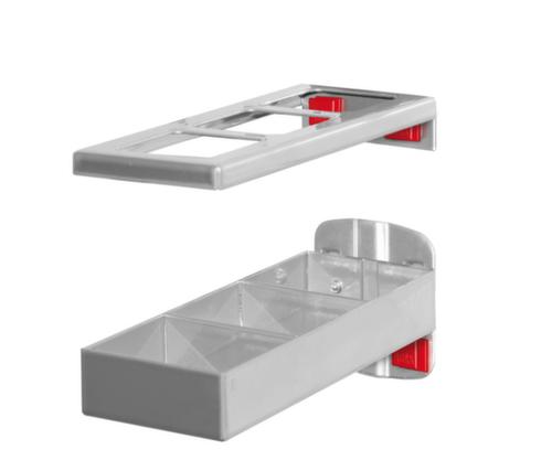 "longDescription": "<h2>Supporto combinato per piastra forata</h2><strong>Per piastre forate RasterPlan®</strong><br><ul><li><strong>Manipolazione facile e veloce</strong> - montaggio senza attrezzi</li><li><strong>Superficie estremamente resistente</strong> grazie al rivestimento in plastica</li></ul><br>L'intera gamma di ganci RasterPlan con attacco ABAX® rappresenta un ulteriore sviluppo delle note gamme di ganci RasterPlan. Con il nuovo attacco, è possibile collegare e scollegare i portautensili alla parete perforata senza attrezzi e in pochi secondi.<br><br>Il bloccaggio e la messa in sicurezza avvengono dopo l'aggancio, fissando il collegamento e premendo sul perno di bloccaggio. Il collegamento si sblocca estraendo il perno di bloccaggio. I ganci possono essere riutilizzati più volte. In questo modo è sempre possibile adattare in modo rapido e semplice la suddivisione del pannello forato alle esigenze attuali.<br>",