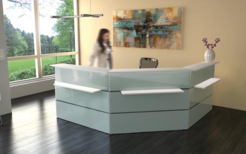 "metaDescription": "Kerkmann Bancone angolare Atlantis su 2 angoli - HxLxP 1080x2500x2500 mm, con ripiano per borse, in vari colori",