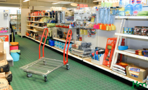 "description": "carico max. 200kg, Lxl sup. carico 850x600mm, MDFpiastra, zincato, piattaforma ripiano a griglia, 2maniglione di spinta, nidificabile, rosso/argento, 4ruote orientabili, gommatura in TPE",