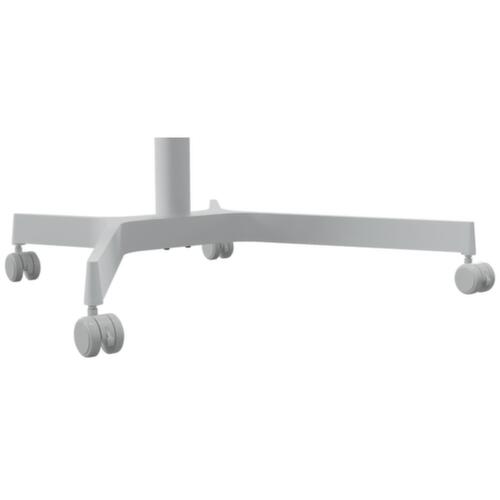 pannello in truciolato con rivestimento in resina melamminica facile da pulire in finitura bianco. forma della piastra rettangolare. bordo con bordo ABS antiurto. telaio in alluminio con verniciatura a polvere a prova di urti e graffi in bianco. regolazione dell'altezza tramite supporto pneumatico mediante leve. In tal modo l’altezza può essere regolata in continuo. telaio con 4 ruote orientabili, per una facile manovrabilità.