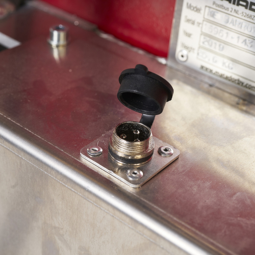 sovrastrutture: vaschetta. vaschetta di polietilene ad alta densità in rosso. struttura in alluminio. La vaschetta è ulteriormente stabilizzata dall’inserto ad anello in acciaio massiccio. ruota con gommatura in poliuretano a prova di guasto su cerchione in acciaio inox.