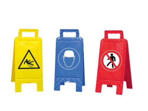 "longDescription": "<h2>Segnale di avvertimento</h2><strong>Simboli su due lati</strong><br><ul><li><strong>Per la marcatura rapida e mobile delle</strong> aree pericolose</li><li><strong>Robusto e durevole</strong> - in plastica</li><li><strong>Trasporto e stoccaggio sicuri</strong> - si ripiega e si chiude con una clip</li><li><strong>Nessun ripiegamento involontario</strong> - può essere bloccato quando è aperto</li><li><strong>Per la delimitazione di aree complete</strong> con contenitori laterali per catene in plastica</li></ul><br><strong>La scelta è vostra:</strong><br><ul><li>I <strong>cartelli obbligatori</strong> indicano ai dipendenti delle aree di lavoro pericolose quali dispositivi di protezione devono essere indossati.</li><li>I <strong>segnali di avvertimento</strong> richiamano l'attenzione delle persone sui potenziali pericoli.</li><li>I <strong>cartelli di divieto</strong> indicano in modo semplice e comprensibile a clienti, visitatori e dipendenti quali sono i comportamenti da evitare per evitare incidenti o danni.</li></ul>",