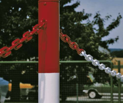 "longDescription": "<h2>Catena di barriere</h2><strong>Estremamente resiliente e testato per la resistenza allo strappo</strong><br><ul><li>Per delimitare percorsi, piazzali e zone riservate in combinazione con i paletti divisori.</li><li>In nylon o acciaio, appositamente zincato con rivestimento plastico aggiuntivo, spessore 6 mm.</li><li>Ganci a S per appendere e disfare e maglie di collegamento per il montaggio a catena come accessori</li></ul>",