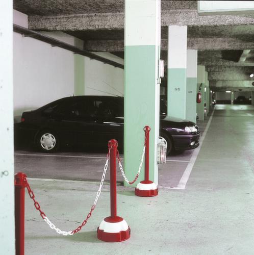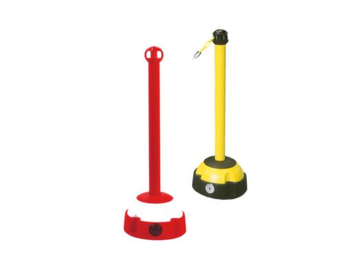 "metaDescription": "Moravia Cavalletto di segnalazione per catene - H 975 mm, palo rosso o giallo, base rossa/bianca o gialla/nera",