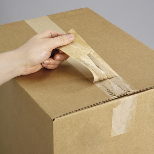 "longDescription": "<h2>Nastro bagnato rinforzato</h2><strong>Rende visibile l'accesso non autorizzato</strong><br><ul><li>La colla essiccata danneggia la superficie del cartone quando si stacca</li><li><strong>Particolarmente resistente allo strappo in</strong> larghezza grazie al rinforzo longitudinale</li><li>Adatto per cartoni medio-pesanti</li><li><strong>Buona adesione</strong> grazie alla colla vegetale su carta riciclabile</li><li>Dopo la lavorazione a temperatura ambiente, resistente al calore da -10°C a +27°C per un breve periodo.</li></ul><strong>Acquisto solo in unità di imballaggio complete (PU)</strong><br>",