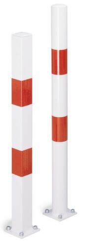 "longDescription": "<h2>Pali della barriera</h2><strong>con testa piatta</strong><br><ul><li><strong>Effetto segnale</strong> - con 3 strisce riflettenti di colore rosso.</li><li><strong>Assolutamente resistente alle intemperie e durevole</strong> - realizzato in tubo d'acciaio zincato a caldo</li><li><strong>Superficie estremamente resistente</strong> grazie al rivestimento in plastica</li></ul><br><strong>Avete la possibilità di scegliere:</strong><br><ul><li><strong>Barriera permanente o passaggio di breve durata</strong> - per l'inserimento nel calcestruzzo o il tassellamento, per la rimozione o il ribaltamento</li><li><strong>Tondo o</strong> quadrato - in tubo tondo o quadrato</li></ul>",