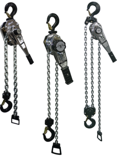 "longDescription": "<h2>Paranco a leva</h2><strong>Versione Premium</strong><br><ul><li>Freno di sicurezza a pressione di carico con due nottolini</li><li>Ganci superiori e inferiori con alette di sicurezza</li><li>Gancio di sicurezza fuso</li><li>Standard con catena di carico da 1,5 m, ad alta resistenza secondo DIN EN 818-7-T, temprata e zincata</li></ul><br><h3>Ergonomia:</h3><ul><li>Sollevamento, trazione e tensionamento in qualsiasi posizione e direzione</li><li>Leva di sblocco per l'estrazione rapida della catena in condizioni di scarico</li><li>Volantino chiuso di grandi dimensioni e di facile impugnatura</li><li>Leva manuale, presa extra sicura e sempre inserita grazie al cricchetto</li></ul><br>Il paranco a leva è la fase successiva dello sviluppo della serie Premium. L'alloggiamento è realizzato in lamiera d'acciaio cromata e tutti i punti di connessione sono zincati. Grazie alla resistenza straordinariamente elevata e alla bassissima resistenza all'attrito, il paranco a leva ha una vita utile molto lunga. Nonostante l'ingranaggio e l'alloggiamento dei freni rinforzati, si ottiene un notevole risparmio di peso, che migliora notevolmente la maneggevolezza.<br>",