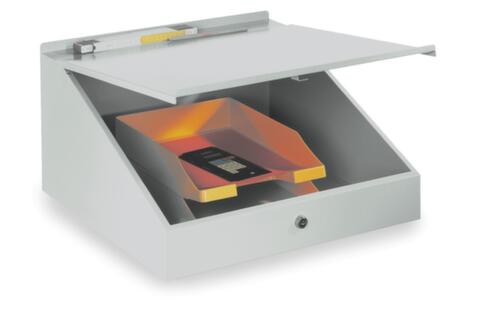 "longDescription": "<h2>Console a muro</h2><strong>Superficie di scrittura e di archiviazione salvaspazio</strong><br><ul><li><strong>Stabile e robusto</strong> - costruzione in lamiera d'acciaio saldata</li><li><strong>Coperchio pieghevole</strong> con bordo arrotolabile anteriore e posteriore</li><li><strong>Vano portaoggetti a prova di furto</strong> con serratura a cilindro</li></ul><br>La scrivania a parete PAVOY è il perfetto ausilio di lavoro nelle aree di produzione o nelle officine. Nonostante l'ingombro ridotto, offre spazio di stoccaggio grazie al coperchio ribaltabile. Il coperchio, dotato di serratura a cilindro, protegge il contenuto dai furti. La scrivania è dotata di bordi arrotolabili nella parte anteriore e posteriore, in modo che documenti e penne siano sempre a portata di mano. La robusta struttura in lamiera d'acciaio saldata ha una garanzia di 10 anni.<br><br><strong>Nota bene!</strong><br><br>L'intera struttura reca il marchio GS ed è testata dal TÜV.<br>",