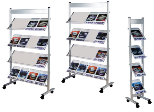 "longDescription": "<h2>Portadepliant mobile</h2><strong>per una presentazione chiara delle informazioni</strong><br><ul><li><strong>Protezione dalla polvere</strong> - ripiani in acrilico per brochure</li><li><strong>Tenuta sicura</strong> - contro la caduta con il bordo di arresto</li><li><strong>Robusto e resistente agli urti</strong> - robusta struttura in acciaio con verniciatura a polvere</li><li><strong>Mobile in tutte le direzioni</strong> - ruote gemelle piroettanti con freno</li></ul><br><strong>La scelta è vostra:</strong><br><ul><li><strong>Più spazio di archiviazione</strong>: fino a 16 ripiani per opuscoli</li></ul>",