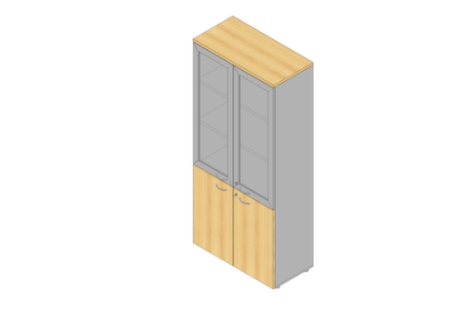 "description": "AxlxP 2000x900x450mm, 4xripiano in legno, 5 AR, ante in vetro con telaio, corpo bianco, parte ant. grigio",
