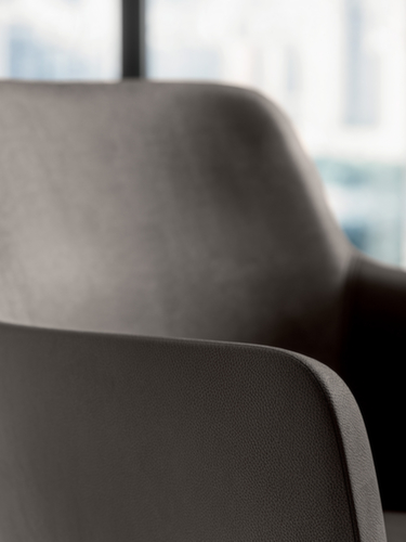 "description": "4gambe/4ruote Tubo rotondo grigio scuro, c. braccioli, seduta PU espanso beige, schienale PU espanso beige",