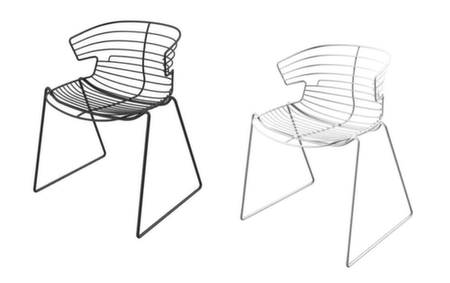 "longDescription": "<h2>Sedia per visitatori</h2><ul><li>Con scocca aperta in filo metallico</li><li>Base a slitta con piedini a pavimento</li><li>Impilabile</li></ul><br>Questa poltrona per visitatori è assolutamente resistente alle intemperie e quindi perfettamente adatta alla vostra area esterna. Può essere utilizzato per mense e aree fumatori, ma anche come elemento decorativo nell'area della reception.<br><br>La scocca del sedile aperto è realizzata interamente in filo di ferro. La laccatura resistente alle intemperie impedisce che la superficie si arrugginisca o si sfaldi. Grazie al telaio antiscivolo, la sedia è sempre ben salda e i pattini proteggono ulteriormente il pavimento. <br><br>Se non avete bisogno della sedia per visitatori, potete impilarla per risparmiare spazio. Ciò significa che occupa poco spazio in magazzino.<br><br><strong>Nota bene!</strong><br><br>I cuscini di seduta coordinati sono disponibili come accessori in vari colori. Il rivestimento è in poliestere e l'imbottitura è inoltre ignifuga, testata secondo la norma DIN 4102-B1.<br>",