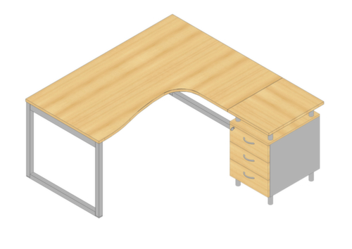 "description": "1scrivania, 1cassettiera da terra, AxlxP tavolo 730x1600x1650mm, Telaio a slitta alluminio argentato, applicazione sinistra, grigio",